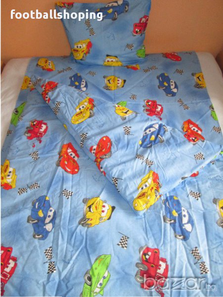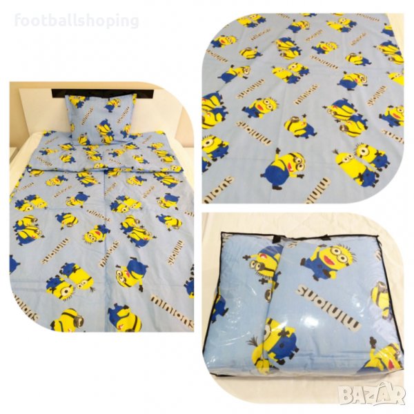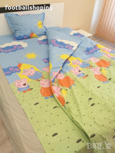 Пес Патрул,Speed Racer,Pepa Pig и Минъоните :) - с единична или двойна вата.Комплектът включва калъфка - 50/70см, долен чаршаф - 130/220см и завивка 130/210 см.Ако клиента желае завивката може да се замени с плик,който е с размери 150/210см.Цената на комплект със завивка е 60лв,а на комплект със плик е 50лв.МАТЕРИЯ : 100% ПАМУК.Гарантирано високо качество на изработка.100% българско производство.Комплектът е от страхотна материя и има страхотни цветови нюанси по него.МОЖЕ ДА ИЗРАБОТИМ И КОМПЛЕКТИ ЗА ПРИСТА ИЛИ СПАЛНЯ.Повече информация на посоченият телефон за връзка :) Разполагам и с артикули на ЦСКА и ЛЕВСКИ - тениски,детски екипи,суитчери,анцузи и плажни хавлии :) Моля разгледайте и другите обяви в профила ми :) Посетете facebook страницата ни - FOOTBALLSHOPING :)