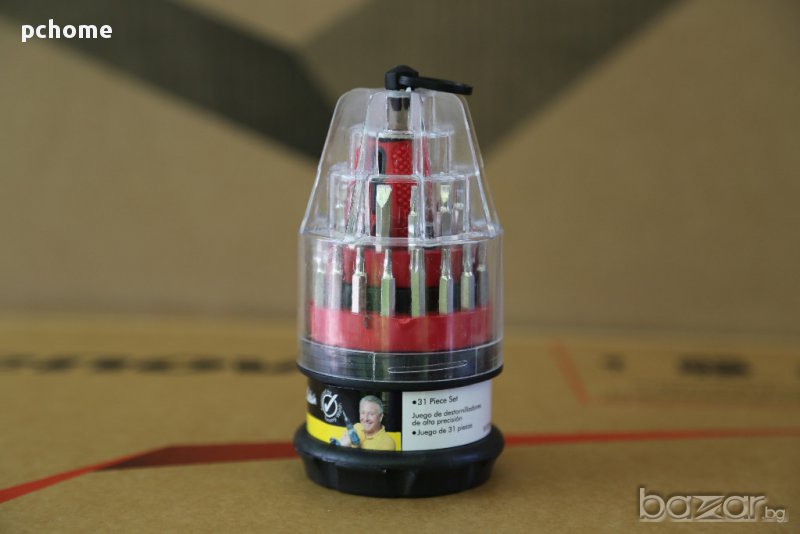 Сет накрайници от 31 части за винтоверт или ползване на отверката в комплекта.