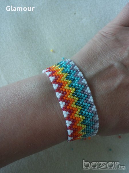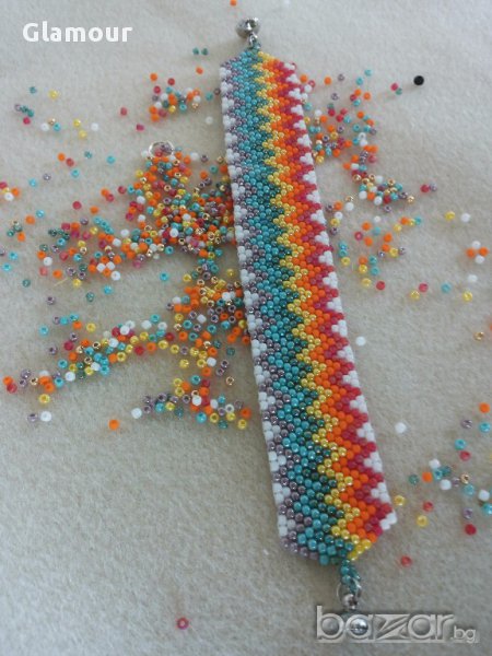 Гривната е изработена от японски мъниста тохо-техника Peyote и метална магнитна закопчалка.Дължина на гривничката 16,5/17 см.,ширина-2,3 см.