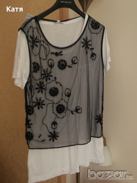 Красива, нова, секси, прозрачна блуза с ръчно декорирани цветя. Блузата е прозрачна, снимана е върху тениска, за да изпъкнат орнаментите. Размер М, еластична.
