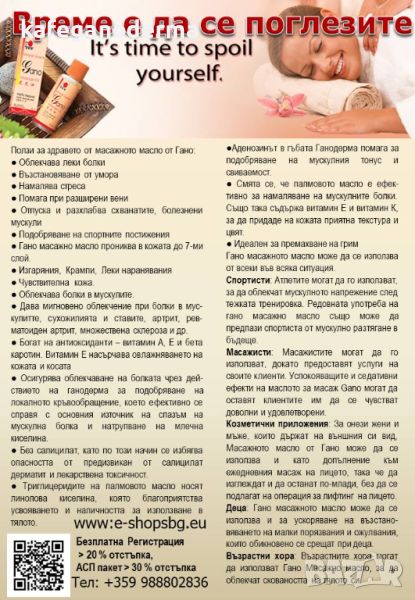 Гано Масажно масло, което осигурява революционно релаксиращ масаж.