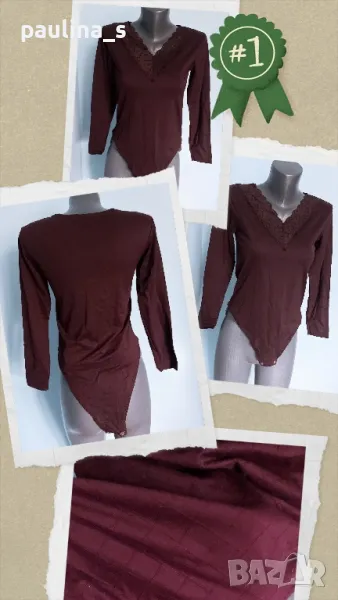 2. Колаж / M / 3XL - Бордо боди унисайз. Бг производство, ново. Цената е крайна 19,99лв. Унисайз боди, много еластично, от релефна ликра с дантела на деколтето, може да се носи като топ или бельо. Цветът е Бордо, тъмно червен. Ново е, без дефекти и етикет.