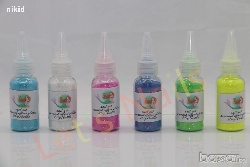 Нанесете желан безцветен или цветен лак 2 пласта, поръсете магическия прах по нокъта, пристиснете с пръст отгоре и изчакайте 15-20 мин. Останалото изсипано количество пудра върнете обратно в опаковката ,а на новата си визия ,вече може да се наслаждавате и да блестите като истинска русалка. Запечатайте с топ.