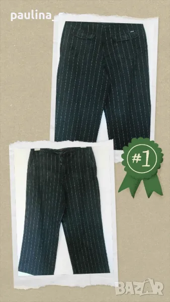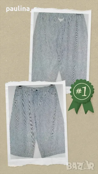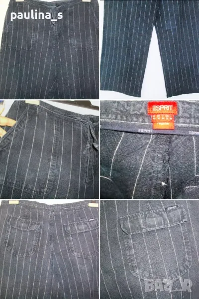 4️⃣. Колаж / L / 2XL / Тъмно сини с бели райета - Regular "Esprit" relax. Цената е крайна 39,99лв / 20 евро. Ленен дънков панталон с широки крачоли. Платът е плътен Деним, с % лен. Цветът е тъмно син, с дискретни бели вертикални райета. Моделът е предназначен за по-топло време, свободен, падащ право надолу без интервенции в ширината на крачолите. Поради съдържанието на лен, дрехата е невероятна. Джобовете отпред са външни с двойни фиксиращи тегели, отзад са с велкро капаци. Талията се регулира с допълнителен шнур. Без дефекти и етикет, с изработка и качество, гарантирани от бранда!
