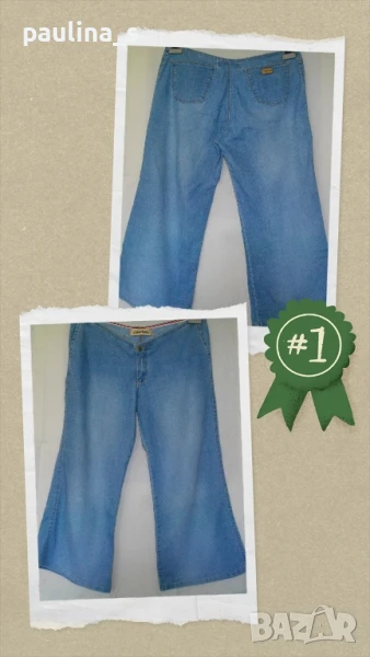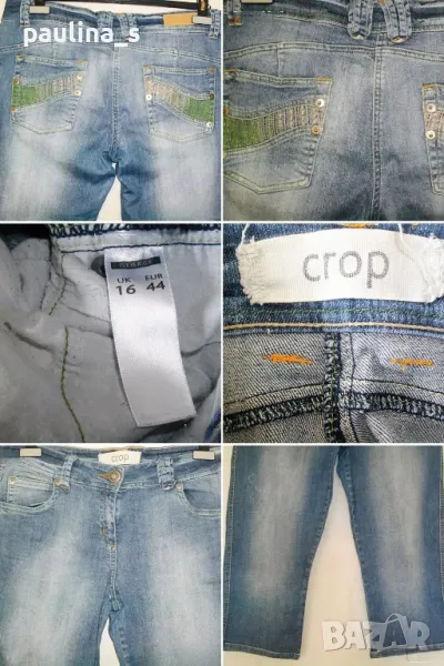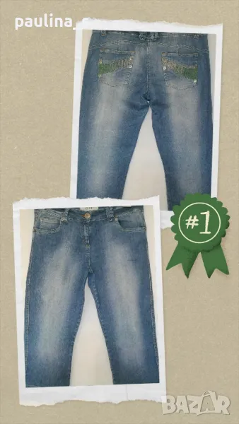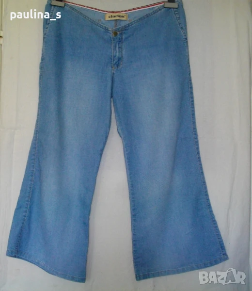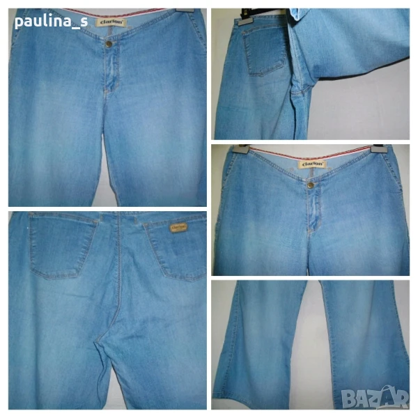 5️⃣. Колаж / XL / 3XL - "Clarion" Дънки с широки крачоли "crop" jeans. Цената е крайна, без пазарлъци 20 евро. Дамски маркови, много еластични дънки. Моделът е 5 pocket denim, дължина 7/8. Талията е класическа, джобовете отзад са бродирани. Имат изразен избелващ ефект, на ключовите зони на бедрата, стоят перфектно. Голям номер, много еластични и мекички, което ги прави специални.