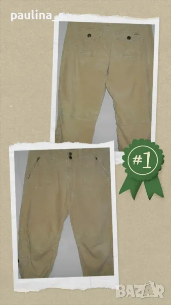 1️⃣ . Колаж / L / 2XL - Джинсови бермуди "Aeropostale". Цената е крайна 14,99лв / 7,5 евро. Брандови джинсови бермуди 100% органичен памук, цвят Охра. Ширината на крачолите се регулира с шнурче, коленете са с басти. В долната част на крачолите има декоративни джобове. Джобовете отпред са шпиц с ципове. Брандирани копчета и бродирано лого. Без дефекти са, една бройка.