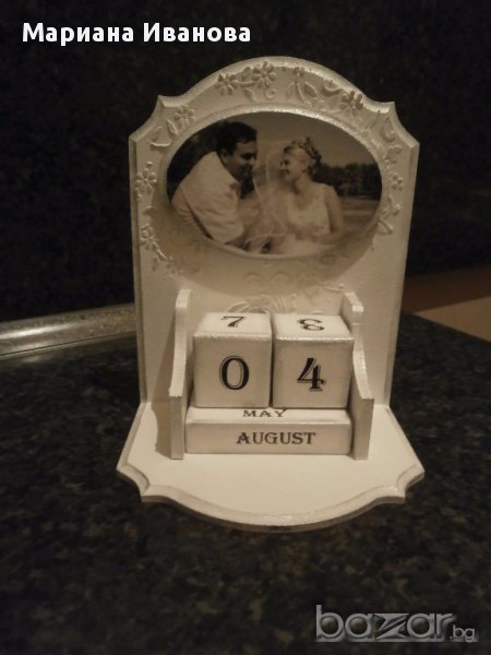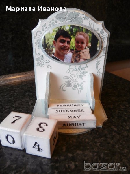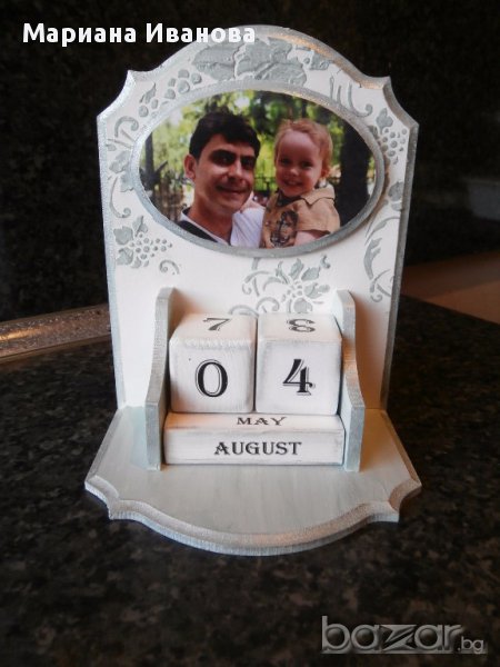"Вечен" календар от дърво, 15/20 см, изработвам с Ваша снимка и/или послание по желание на клиента. Предварително се уговарят подробности по визията на календара. Предпечатна подготовка, ако е необходима, се заплаща допълнително по 2 лв. на снимка.