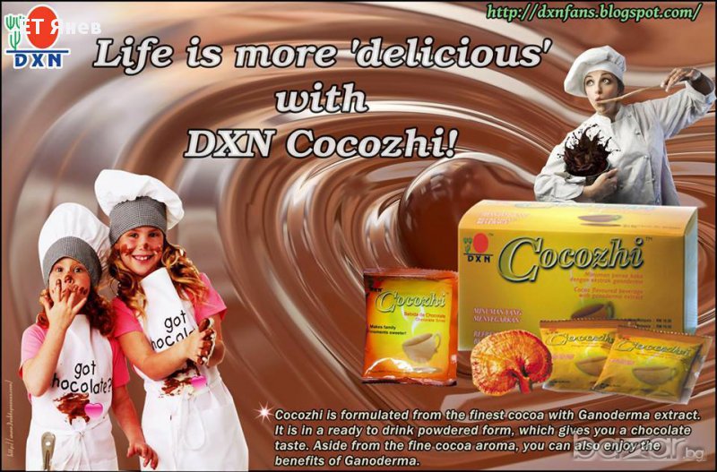 Рейши помага за изчистване на кръвоносните съдове от плаки, нормализира кръвното налягане, засилва имунната система, нормализира ph на тялото, снабдява тялото с кислород, подобрява оросяването на мозъка и действа антидепресиращо и антистресово. Какаото допълва действието на рейши, защото в зърната му се съдържа флаванол, който е в състояние значително да подобри кръвообращението в мозъка. По този начин съдейства за сваляне кръвното налягане. Ежедневната консумация на богата на флаваноли какаова напитка може да направи обратими животозастрашаващите увреждания на кръвоносните съдове, свързани с диабета. Помага при хора с депресия, при проблеми със съня или при предменструален синдром.Подходящо е за цялото семейство, вклюìтелелно и за децата, като помага за засилване на имунната им система. Съдържание на кутията: 20 пакетчета х 32 гр1 пакетче = 1 или 2 чаши какао