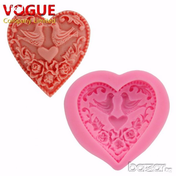 сърце с гълъби сватба Свети Валентин силиконов молд форма за украса торта с фондан шоколад → Обява 15398943