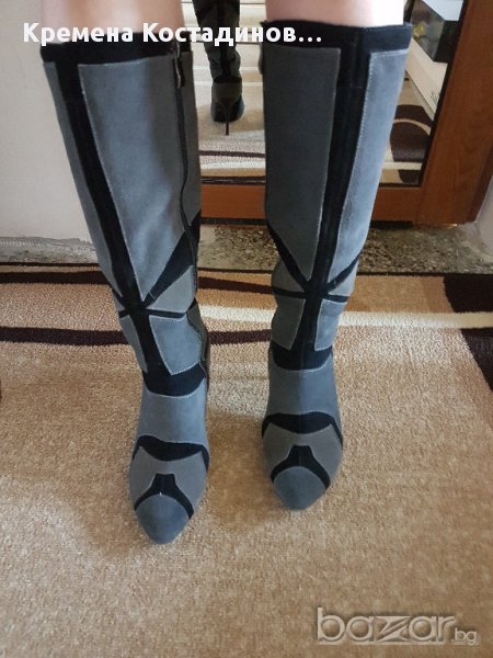 Дамски елегантни ботуши - естествен набук. Височина на тока 10 см. Без забележки - обувани един път по повод.