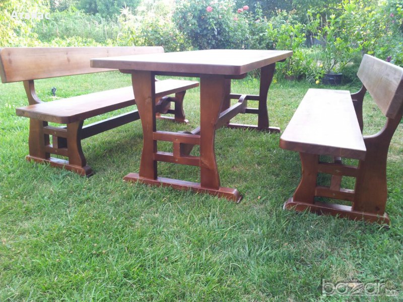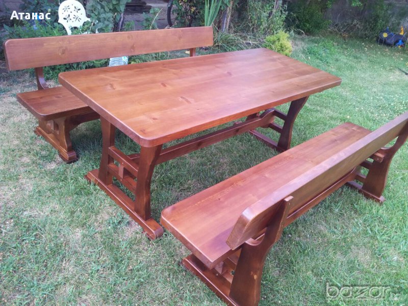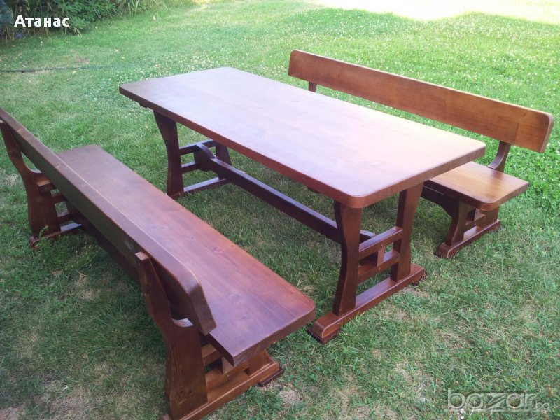 Предлагам изработването на баварски маси и пейки със всякакви размери и ширини или стандартните 195х80х75h.Изработени са иглолистна дървесина изсушена по естествен път и лакирани с италански лакове на Сирка на водна основа за външно ползване или полиуретанова за вътрешно ползване. Дебелината на изработване на целият комплект е 4.5см