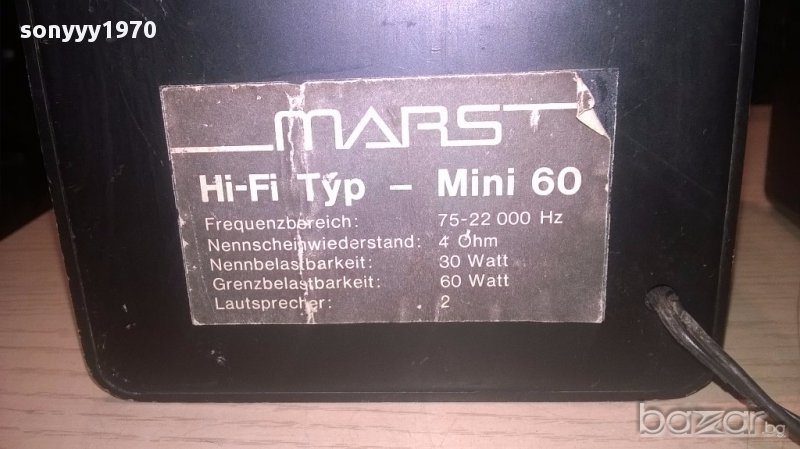 поръчки само тук в саита Mars hi-fi mini 60 2х60watts/4ohms-17/11/11см-внос швеицария...малки и метални зверчета,без ремонти и с оригинални говорители...свирят уникално...як бас...леки забележки по решетките само...нов внос-от днес 28.02.22г пращаме със спиди или еконт с преглед и тест след превод на капаро за куриерската услуга поради зачестили некоректни потребители-поръчки само в тук в саита! по телефона и със смс не! краини цени! бартери не правиме! всеки ден нови неща-още над 18000 обяви тук