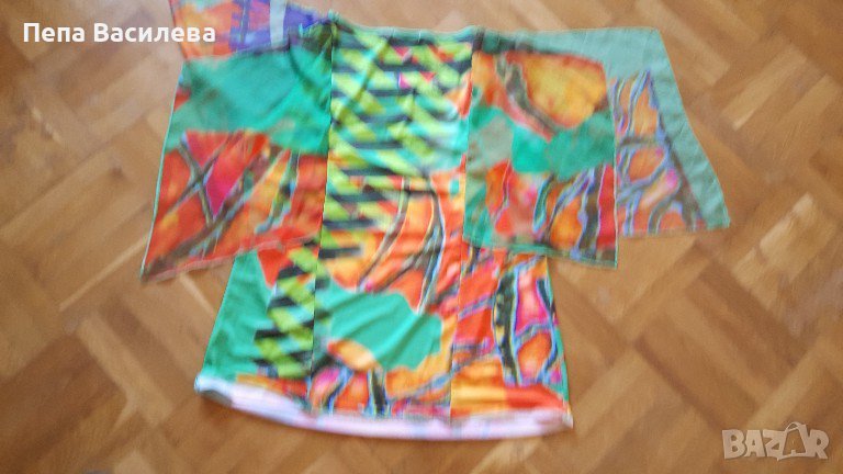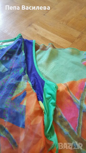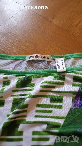 Ефектна и оригинална дамска тениска тип туника на испанската марка PUNTO ROMA,1 00%полиамид.Красиви ръкави.Свежи цветове.Закупена от чужбина.