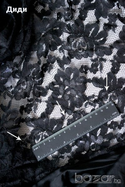 Забележка: има текстилен дефект - от едната страна дантелата е леко разширена при елементите, но е забележимо, само ако се търси.