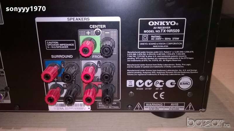 Onkyo tx-nr509 av receiver usb/hdmi/370w-5chanel-внос швеицария...извънземен звяр...яка и маркова машина...тунер с рдс и усилвател с 5 изхода за колони...хдми и юсб...тежка и яка машина...внесена е вчера от швеицария и свири много здраво...класа и стил-пращаме със спиди или еконт с преглед и тест след превод на капаро за куриерската услуга поради зачестили некоректни потребители-поръчки само тук в саита! по телефона и със смс не! краини цени! бартери не правиме! ПАРИ НЕ ВРЪЩАМЕ! всеки ден нови неща-още 2-3 наши обяви тук