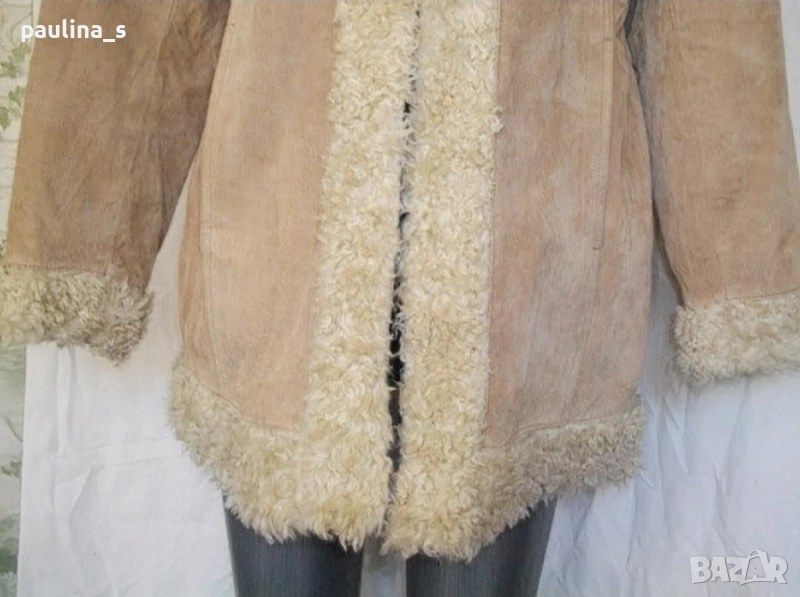 2️⃣. Колаж / XL / 2XL - Топъл дамски кожух "New York classics" timeless quality. Цената е крайна, без пазарлъци 59,99лв / 30 евро. Дамски кожух от естестве велур в цвят Нюд. Моделът е втален и елегантен, изработен от естествен велур, с добавка на яката, предниците и долу с кантове артифициална кожа с косъм. Отвътре е подплатен с тегелиран хастар и вата - дебел и топъл. Като нов, никога не е носен.