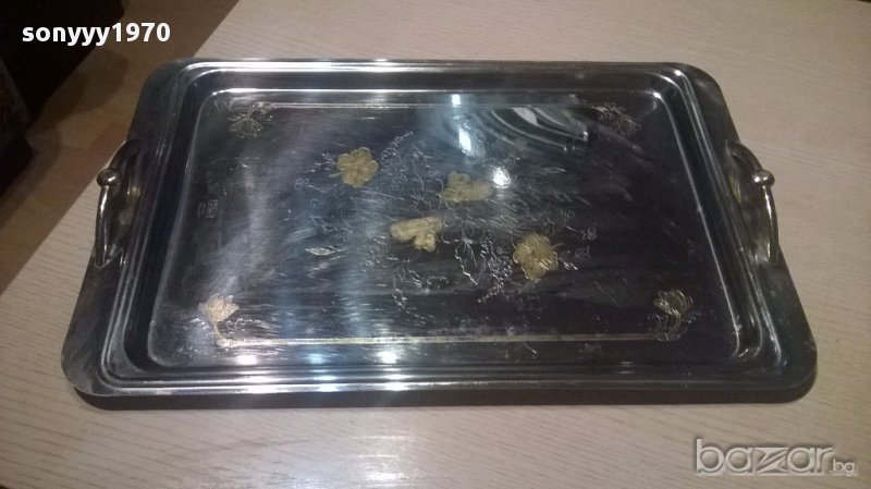 Rostfrei 18/10 gold 24k-поднос 46/30см-позлата+камъни-внос швеицария