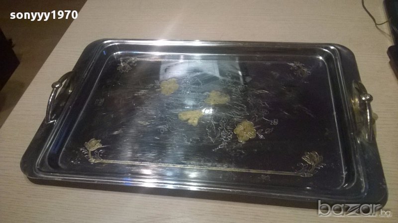 Rostfrei 18/10 gold 24k-поднос 46/30см-позлата+камъни-внос швеицария,класа и стил...позлатен и марков с инкрустирани камъни в дръжките...масивен и красив...нов внос-поръчки само тук в саита! от днес 28.02.22г пращаме със спиди или еконт с преглед и тест след превод на капаро за куриерската услуга поради зачестили некоректни потребители-поръчки само в тук в саита! по телефона и със смс не! краини цени! бартери не правиме! всеки ден нови неща-още над 18000 обяви тук