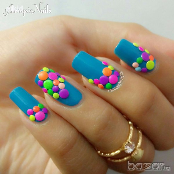 400 бр 2-3 мм НЕОН декорация за нокти маникюр декоративни пайети капси метални цветни точки → Обява 15482656