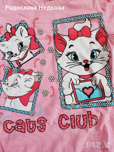 Страхотен памучен комплект за момиче - туника с апликация на Котето Мари и клинче. Българско производство! Размер - 86 см.
