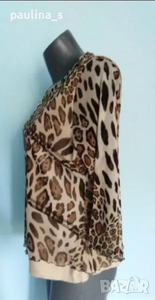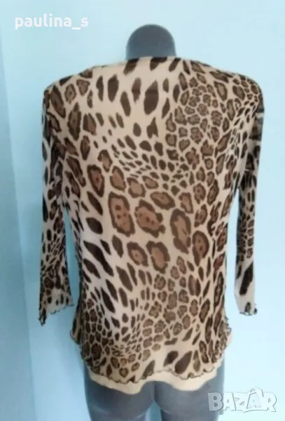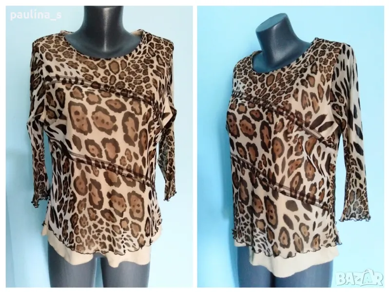 2️⃣.Колаж / L / 2XL - Еластична блузка тип туника в леопардов принт "Canda" by C&A / голям размер. Цената е крайна, без пазарлъци 10 евро. Дамска, брандова еластична блуза тип туника с хастар от ликра, цвят нюд. Ръкавите са 7/8, хастарът е само на тялото, не прозира. Материята е мрежеста и еластична, покрива няколко размера. Без дефекти, като нова.