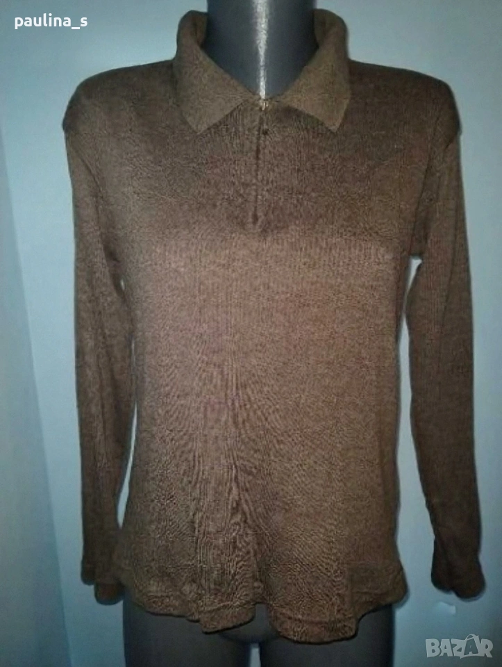 3️⃣. 2XL / 4XL - "Pepper corn". Цената е крайна, без пазарлъци 10 евро. Еластична брандова блуза с дълъг ръкав, цип и яка. Трикото е рипсено, еластично и меко, изключително приятно за носене на голо. Моделът се вижда добре.