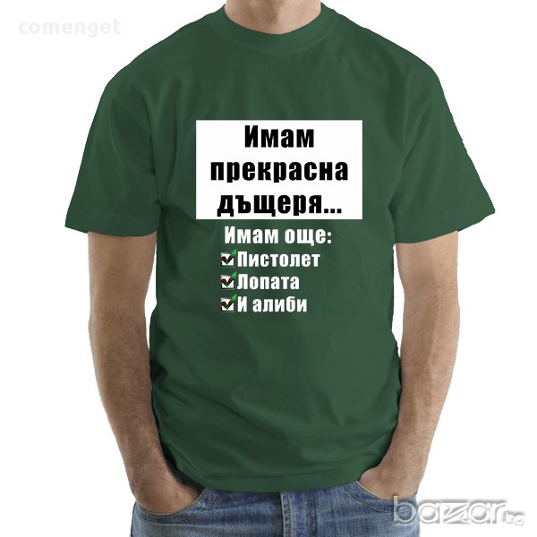 СТРАХОТНИ ТЕНИСКИ СЪС ЗАБАВНА ЩАМПА - ''ИМАМ ДЪЩЕРЯ - ИМАМ АЛИБИ'' за сериозни ТАТКОВЦИ! ОРИГИНАЛНО ПРЕДЛОЖЕНИЕ ЗА РОЖДЕН ДЕН, ИМЕН ДЕН ИЛИ ПРОСТО ПОДАРЪК!
