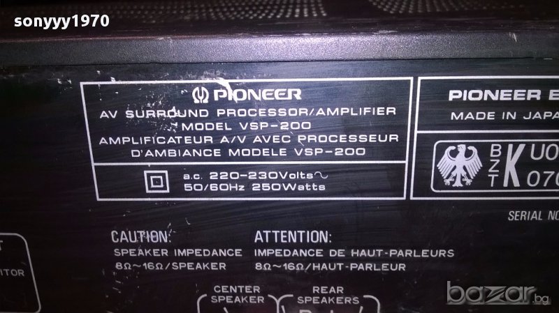 Pioneer vsp-200 processor/amplifier-made in japan-внос швеицария → Обява 15531447