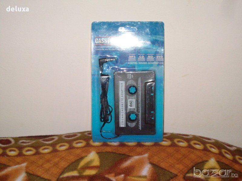 С тази касетка - адаптер имате възможност да слушате музика от различни портативни касетофони, CD / MP3 / DVD плеъри, радио и др. на уредбата във вашата кола ! Към DC адаптера има различни накрайници , а също и възможност за преобразуване на изходното напрежение на 1,5 / 3 / 4,5 / 6 / 7,5 / 9 / 12 v . Адаптера е с до 800 мА изходно захранване ! Включва се към запалката на колата . Само касетката - 5 лв. Само адаптера - 5 лв.