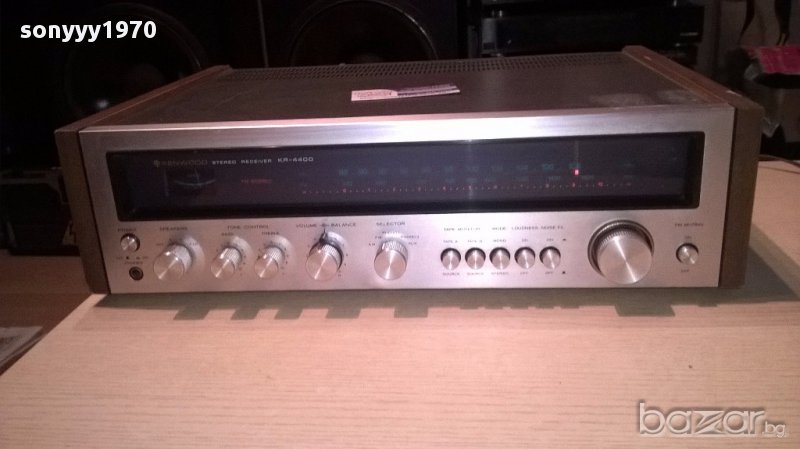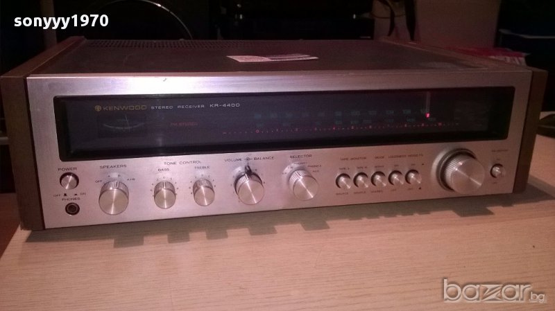 Kenwood kr-4400-stereo receiver-japan-внос швеицария...яка ретро машина...работи и свети всичко по нея...без ремонти и е нов внос...класа и стил-японска оригинална...тунер и усилвател...дървени страници и прекрасно светеща в зелено скала-пращаме със спиди или еконт с преглед и тест след превод на капаро за куриерската услуга поради зачестили некоректни потребители-поръчки само тук в саита! по телефона и със смс не! краини цени! бартери не правиме! ПАРИ НЕ ВРЪЩАМЕ! всеки ден нови неща-още 2-3 наши обяви тук