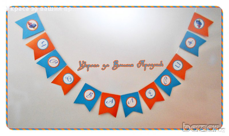 покани * надпис ЧРД + името на детето * топки от тишу с висящи герои *