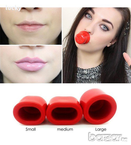 Уголемителите изместват хиалуроновите инжекции. Те приличат на капачки и действат изцяло чрез вакуум, но са проектирани така, че да не оставят нежелани следи след приложението им. Ефектът се получава заради притока на телесна течност и кръв в тази зона. Уголемителите се предлагат в три размера - малък - S, среден - M и голям - L . Първият е за много малки устни. Вторият е за такива, които са широки, но в същото време са тънки. Той ги издърпва и придава обем равномерно по цялата дължина. Третият е за нормални, които искате да направите много големи. Той действа предимно в средната точка и ги придърпва нагоре от основата.