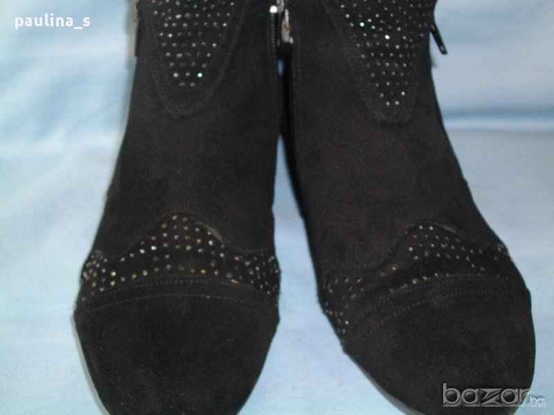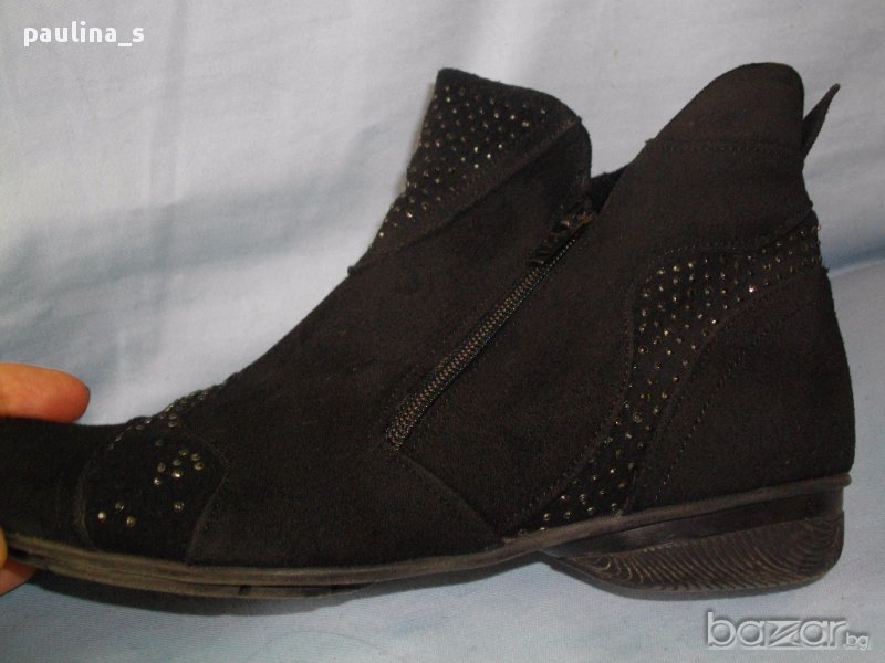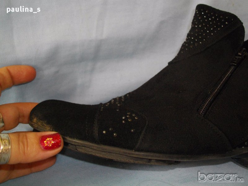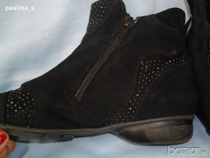 1. Ортопедични български боти от естествен велур. Моделът е с 2 ципа и множество светещи камъни, няколко липсват. Ботите са удобни със супинаторна подложка за плосксъпие, красиви, с изчистена линия и стоят добре с всякави дрехи. Купувани са преди за 69лв, носени са малко, здрави и добре стопанисвани.