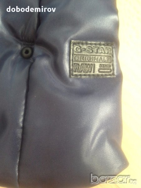 Модел на G star със скрита качулка в яката, метално лого-значка на бранда в предната част, два предни джоба с цип и кожено лого.