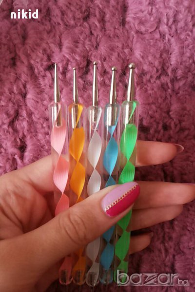 Комплект инструменти за точки 5 бр точкатори за маникюр нокти декорация двустранни → Обява 15570551