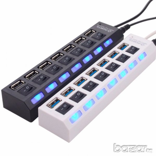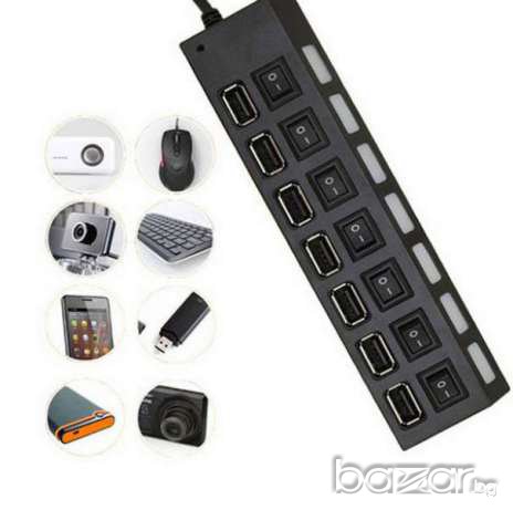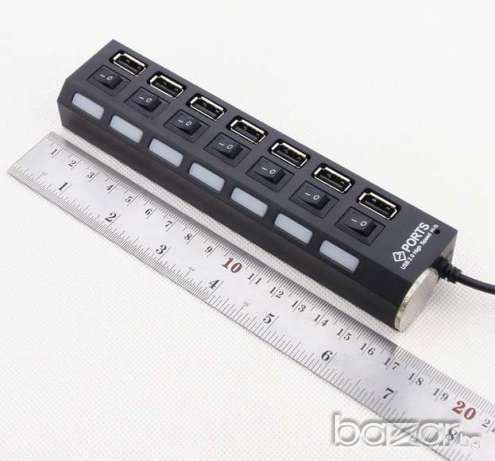 USB Hub разклонител със 7 порта - Едновременно може да пуснете флашка, мишка, охлаждане, зарядно, USB лампа и тн.