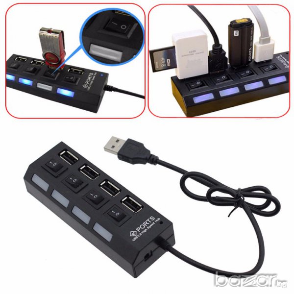 * Всеки USB порт е снабден с копче за включване/изключване(С тези бътони може да изключите някой от портовете без да вадите кабела)