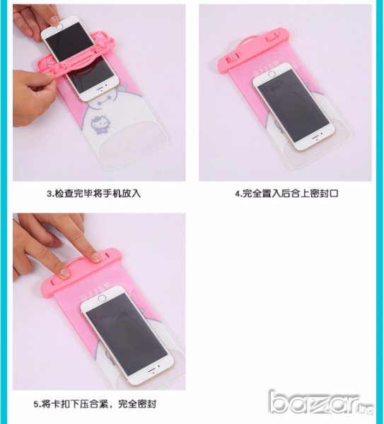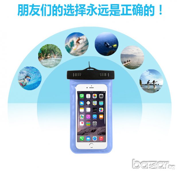Универсален водоустойчив калъф за смартфони до 6 инча = 15.24см. Калъфа е 18-20см на 10см