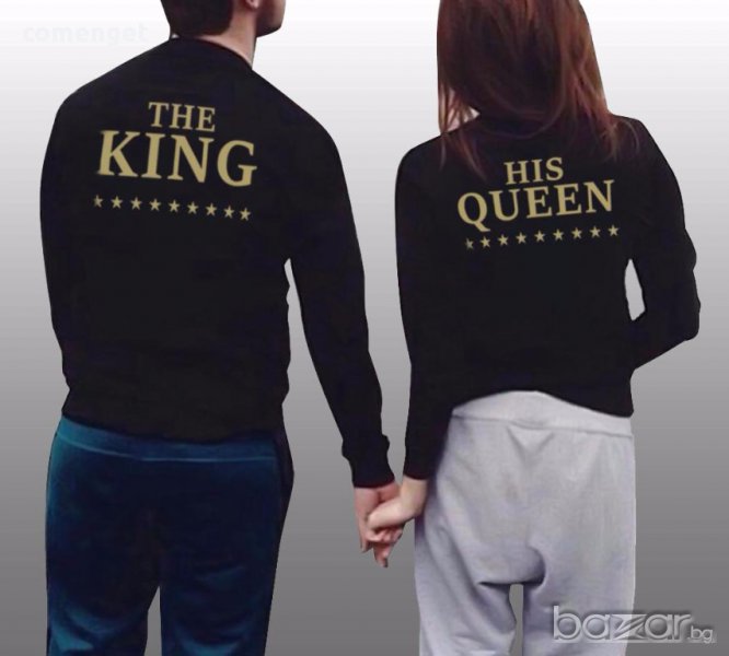 СТРАХОТЕН ПОДАРЪК! УНИКАЛНИ БЛУЗИ С ДЪЛЪГ РЪКАВ ЗА ВЛЮБЕНИ ЗА НЕГО И ЗА НЕЯ ROYAL KING & ROYAL QUEEN! Разполагаме с размери от S до XXL от дамската и мъжката серия. Налични с БЯЛ и със ЗЛАТИСТ надпис по избор на клиента.