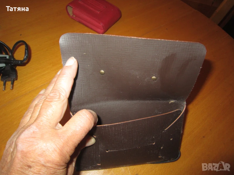 Снимки 4-11; КОЖА ; /дължина 18см; ширина 20см в отворено положение и 10см в затворено;магнитна закопчалка- 20лв/употребявано/Следи от употреба има само на закопчалката./снимка 12/;ЦЕНА -10 €