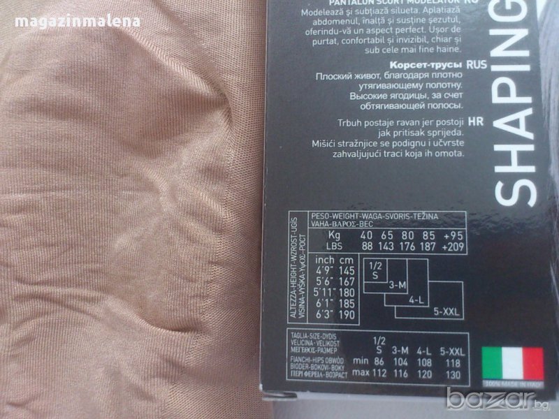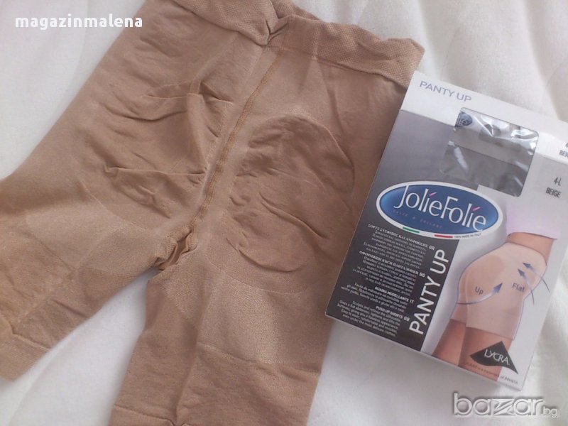 Jolie Folie PantyUpоформящи къси панталонки с крачолис плътност 150 DEN, произведени от италианската марка за стягащо бельо Жоли Фоли/ Jolie Folie. Продуктът извайва и вталява Вашия силует;прибира корема, стяга и повдига бедрата и ханша,допринасяйки за безупречния Ви външен вид. Лесни за носене,удобни и незабележими дори и под най-деликатните дрехи. При колебание Ви съветваме да избиратепо-големия размер, тъй като продуктът е доста стегнат. На опаковката на всеки продукта е изписано, че той е100% произведен в Италия/ 100% made in Italy.Цената е за 1 бр.