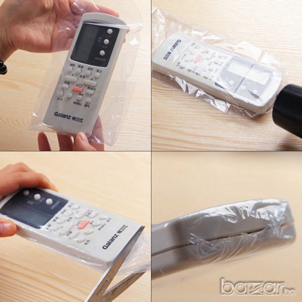 1.Поставете дистанционното управление в плика(ако е прекалено дълго малко може да го отрежете по ваша преценка,но не много понеже се свива след това)