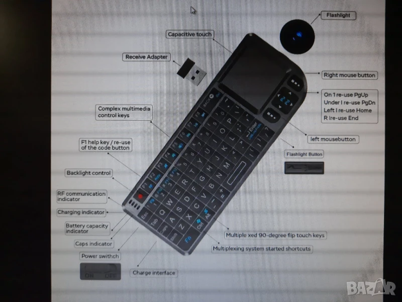 Съвместимост - QWERTY оформление с клавишни комбинации, съвместими с iOS / Mac OS, Android, Mobile, iPhone, iPod, Symbian, HTPC,Windows и всички Bluetooth устройства. Използване на усъвършенствания Bluetooth 3.0 чип, осигуряващ високоскоростна връзка и разстояние на сигнала до 15 метра