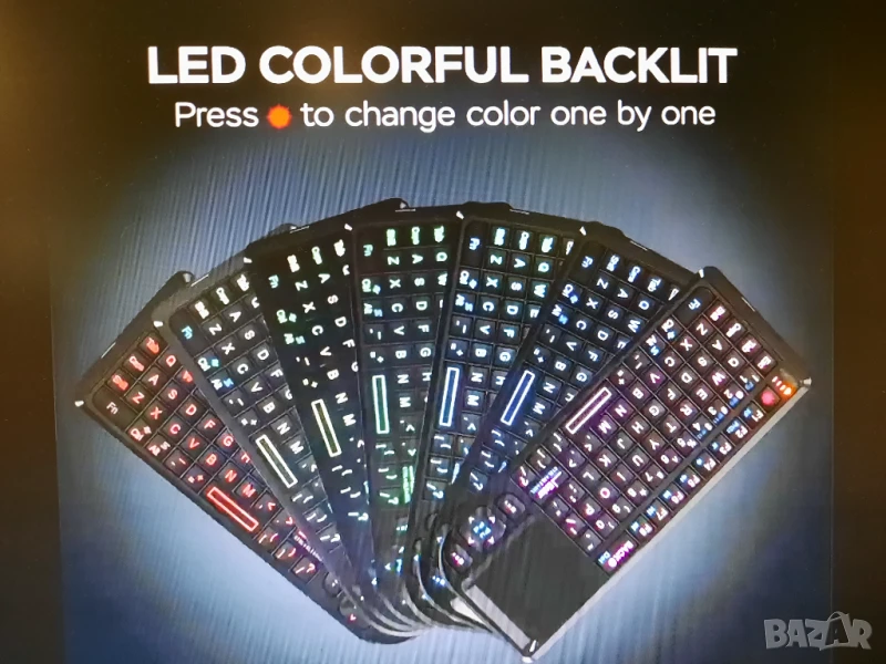 Сгъваема блутут клавиатура с тъч пад - 1бр. или Блутут клавиатура с 7 цвята и тъч пад
