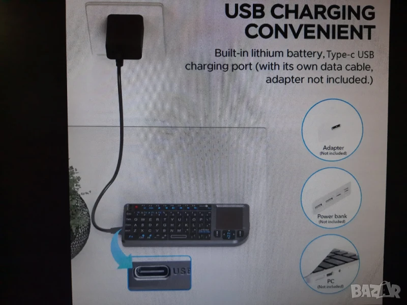 Kлавиатурите са подходящи за телефони, смартфони, Смарт телевизори, таблети и компютри. Зареждат се с USB кабел който върви със тяхв комплект