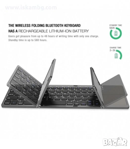 Сгъваем дизайн - изработен от алуминиев отличен материал, свръх тънък сгъваем дизайн и джобен размер. Клавиатура отворен размер: 30.5см * 9.8см * 0.7см, Сгъната е двойно по – малка – 15.2см х 9.8см х 1.4см, размер на тъчпада: 8.5см * 5.7 см