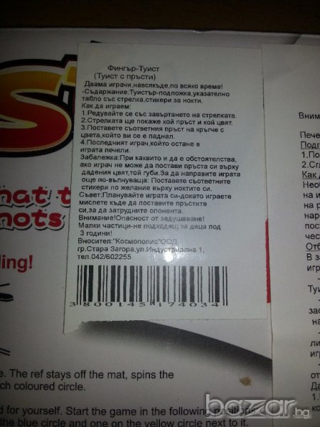2.ДЖОБЕН TWISTER за пръсти включва:Подложка за играта, Дъска със стрелка, Лепенки за нокти.Опаковка Размер: 17 * 13 * 2 см