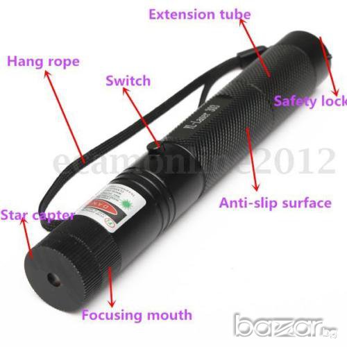 НОВ Мощен зелен лазер JD 303 с мощност 500mW и проекция до 10 000м., корпуса му е изграден от твърда алуминиева сплав подходящ за всякакви условия на употреба.