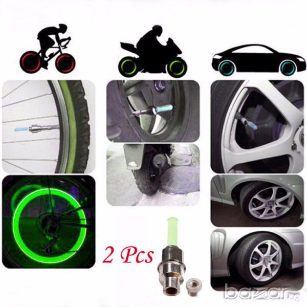 Светещи капачки в неоново Синьо,Зелено,Червено и Жълто LED декоративно осветление за гумите на колело, мотоциклет и автомобил!