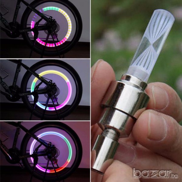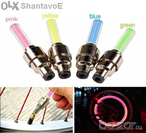 Поставени,светещите капачки светят автоматично,когато гумата се завърти,а когато спре те също спират да светят благодарение на специаленсензор за движение!Създават илюзия за светеща джанта! Поставени, те ще Ви осигурят сигурност и безопасност в тъмната част на денонощието!Атрактивен външен вид на екстериора! Изключително лесен монтаж и демонтаж без наличие на проводници или друга помощна апаратура; Монтират се директно върху вентила на гумата, вместо наличната пластмасова капачка; Светят, когато колелото е в движение!